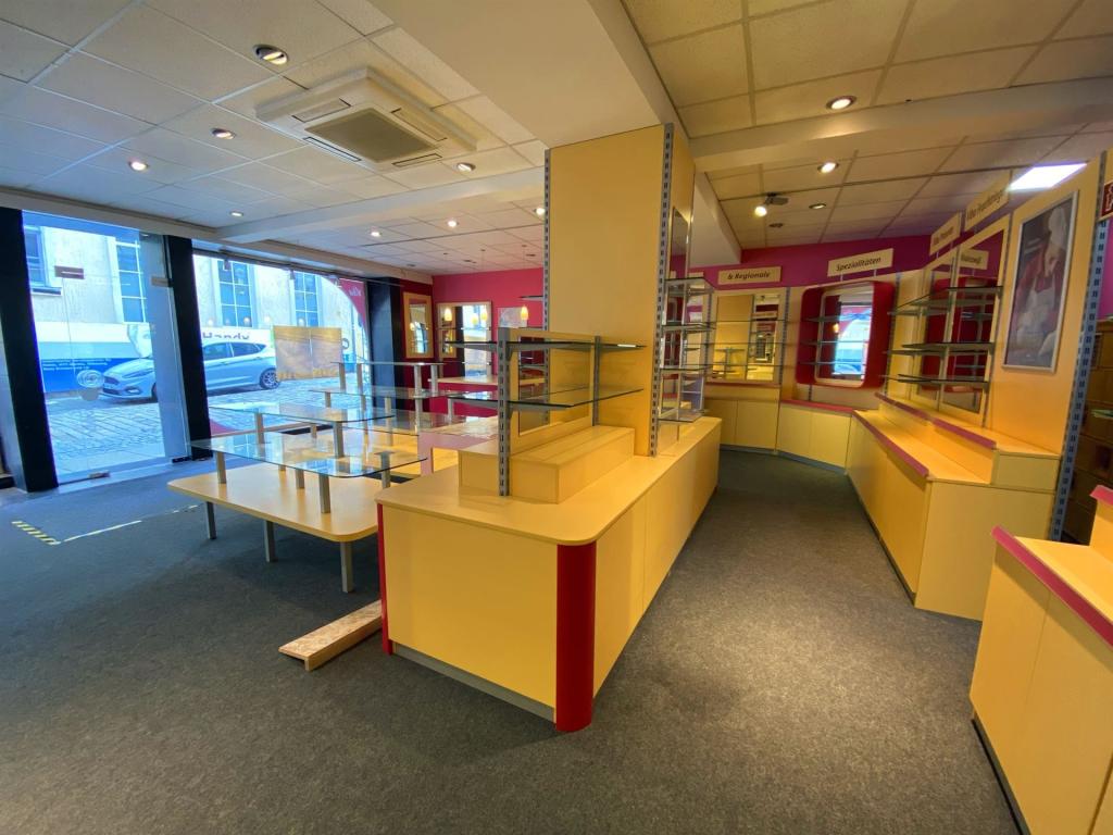 Die Ladenfläche ist mit Teppich ausgelegt und ist aktuell mit der Ladenausstattung des vorherigen Mieters (Viba) bestückt. Diese kann auf Wunsch übernommen oder beräumt werden. Über die Gestaltung des Ladens kann sich individuell mit dem Vermieter abgestimmt und auf Ihre Wünsche angepasst werden. Der Laden verfügt über eine Klimaanlage.